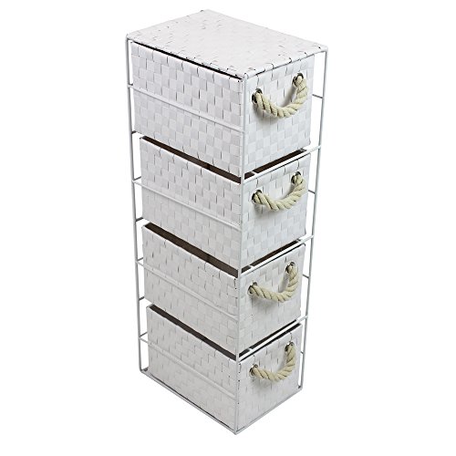 Buy JVL Four-Drawer White Storage Unit with Rope Handles, 18 x 25 x 65 cm in UK.